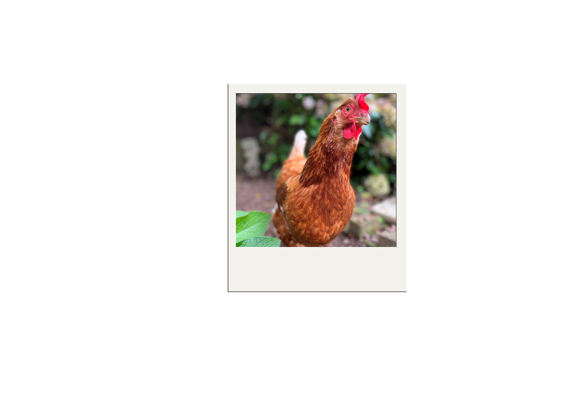 ”Devon has also brought me a rescue chicken named Nugget who seems to think every day is a bring your chicken to work day.“